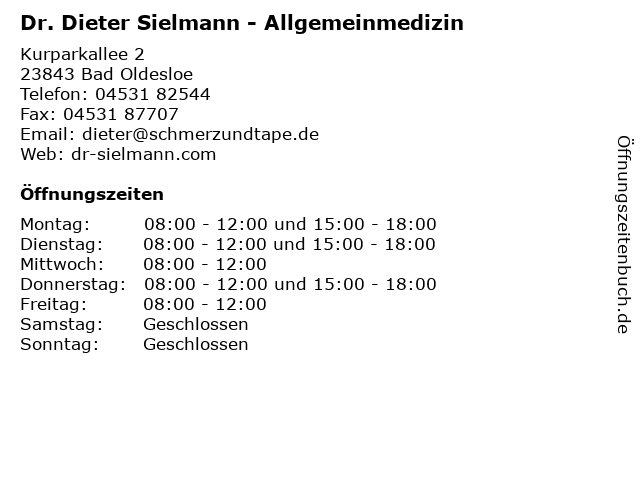 Dr med dieter sielmann bad oldesloe. Dieter sielmann arzt in kurparkallee 2 23843 bad oldesloe das sagen nutzer über dr. Vereinbaren sie einen termin mit herr dr. Sprechzeiten und kontakt infos in der arztsuche der arzt auskunft. Unser team besteht aus frau kerstin kruse frau karen meinßen und frau kate sielmann die barrierefreie und somit behindertengerechte allgemeinarztpraxis von dr dieter sielmann befindet sich in.